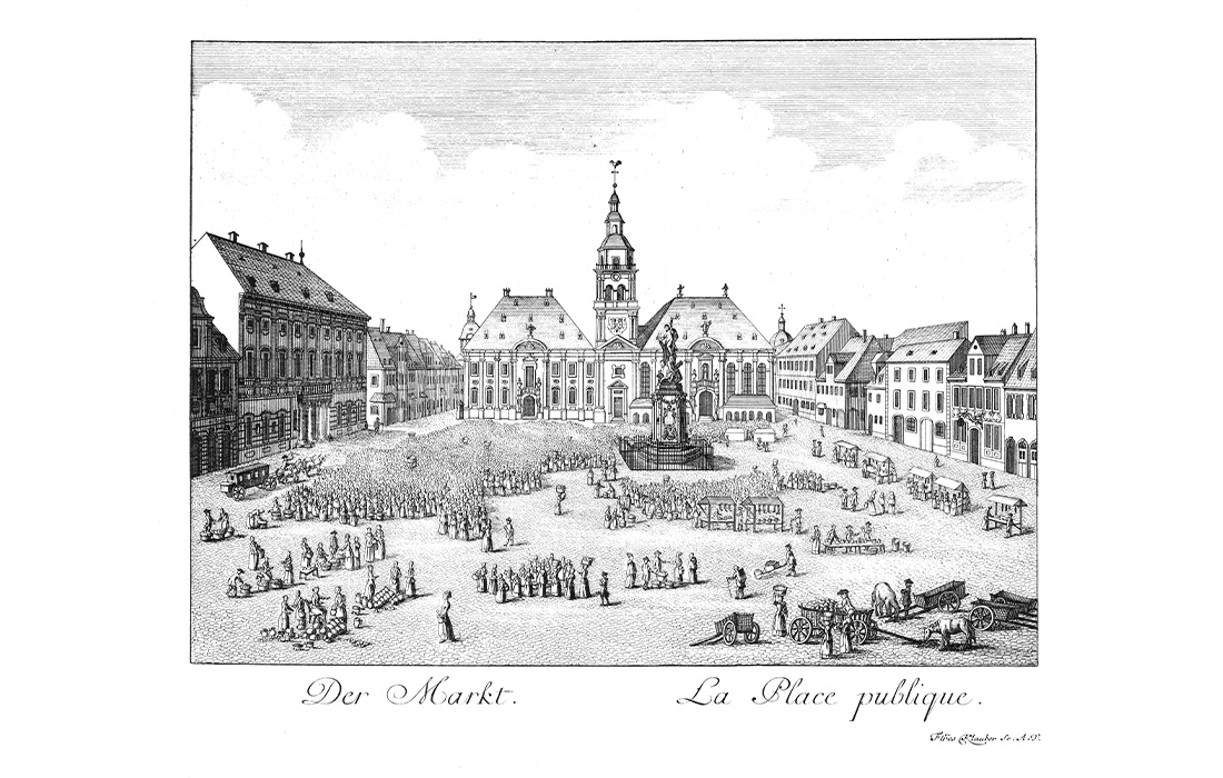 Kupferstich der Gebrüder Klauber nach einer Zeichnung von Johann Franz von der Schlichten, 1782.Leonie Rapp/ rapp.design, Jacob Tegel (Illustrationen)