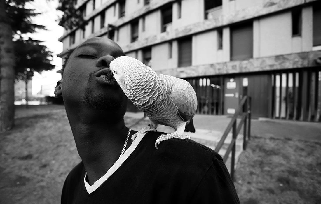 Die Sonderausstellung „La vie des blocs“ vereint rund 130 Fotografien von Jean-Michel Landon. Dieser kennt die Pariser Vororte aus erster Hand. Sein Blick auf diese Welt ist so auch im Gegensatz zur formalen Reduziertheit seiner Schwarz-Weiß-Aufnahmen vielschichtig und differenziert. 1978 in Créteil geboren, bewegt sich Landon zunächst als Jugendlicher, später als Sozialarbeiter und heute als Fotograf im Slalom zwischen den verschiedenen Stadtvierteln. „Landons Reportage gibt einen intimen Einblick und erzählt vom Alltag der Menschen im Schatten der Wohntürme: ungeschönt und ungefiltert, aber immer erfüllt von dem Respekt und der Empathie des Eingeweihten“, beschreibt Kuratorin und ZEPHYR-Leiterin Stephanie Herrmann die Arbeiten. „Landon bricht mit den oft negativen Klischees über das Leben in den Banlieues.“ So verschmelzen in den Aufnahmen harte Alltagsrealitäten — geprägt von ethnischer und sozialer Ghettoisierung, Wohnungsnot, Drogenkonsum und Perspektivlosigkeit — mit Momenten voller Unbeschwertheit, Lebensfreude und Solidarität. Seine Aufmerksamkeit richtet Landon besonders auf die Kinder und jungen Erwachsenen, die er mit sensiblem Blick porträtiert — es sind Momentaufnahmen frei von Inszenierung und Voyeurismus. „Landon ist hier durchaus in der Tradition bedeutender Vertreter der humanistischen Fotografie wie Henri Cartier-Bresson, Willy Ronis oder Robert Doisneau zu verstehen“, erklärt Herrmann. Es sind nicht die lauten Gesten und sensa-tionellen Augenblicke, die Landon festhält. Sein Interesse gilt häufig den leisen Randerscheinungen, dem Alltäglichen. ‹