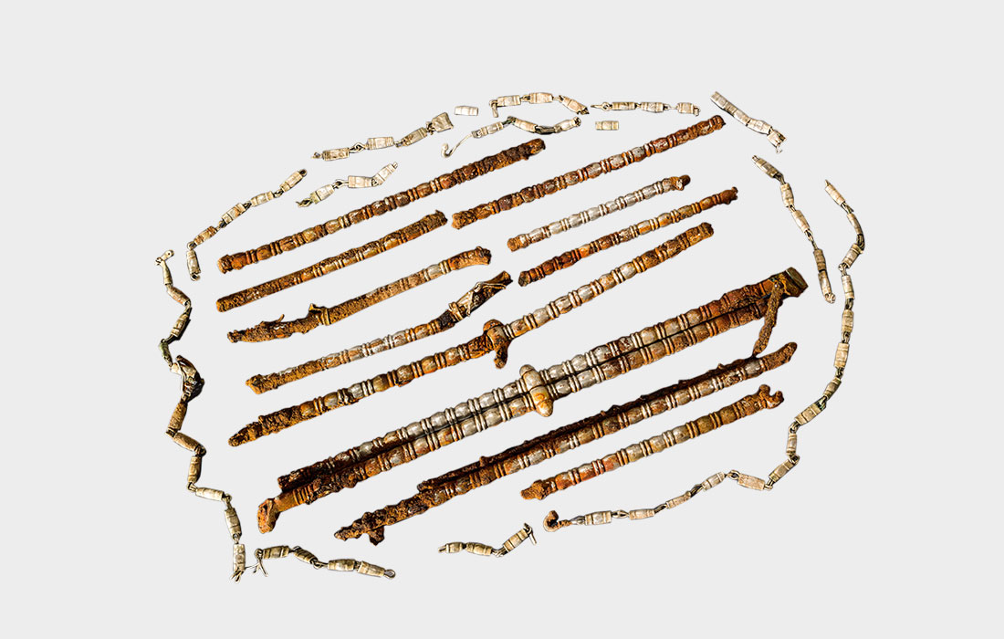 › Satte 11,7 Millionen Kinobesucher waren begeisterte Zeugen, als Bully Herbigs Schoschonen den Klappstuhl ausgruben. Während die cineastischen Ausgrabungsarbeiten für reichlich Gelächter im Publikum sorgten, verging (nicht nur) der archäologischen Gemeinde angesichts einer Raubgrabung in Rheinland-Pfalz der Spaß. Die Finder des sogenannten Rülzheimer Schatzes zerstörten durch ihre unfachmännische, dilettantische — und im Übrigen auch illegale — Ausgrabung alle wichtigen archäologischen Spuren. Fast alle Informationen, die die Fundstelle hätte preisgeben können, gingen verloren. Die wissenschaftliche Aufarbeitung der Originalsituation und die Dokumentation der Befundlage wurden nahezu unmöglich gemacht. Eine wissenschaftliche SensationDiesem verheerenden Vorgehen zum Trotz hielt der Schatz dennoch die ein oder andere archäologische Kostbarkeit bereit. So förderte die Raubgrabung in der Nähe von Rülzheim Fragmente zutage, die Fachleute für die Reste eines prunkvollen Faltstuhls halten. Als das einzig erhaltene Exemplar dieser Art weltweit ist er eine wissenschaftliche Sensation. Denn Tausende von Jahren lang war das Knien oder Kauern die natürliche Sitzhaltung der Menschen. Es war ein Sitzen ohne Stuhl. Holzstümpfe, Steine oder Felsquader waren für Menschen die ursprünglichen Sitzgelegenheiten, bevor der Mensch seine ersten Sitzmöbel schuf.Habgier oder Kulthandlung?„Der Fund besteht aus elf größeren Teilen des Gestänges, zahlreichen Kettenfragmenten, vier zapfenartigen Zierelementen, zwei Statuetten, zwei Büsten sowie vier aus Bronze gegossenen und mit Silber ummantelten Löwenpranken, die als Füße dienten“, erläutert Dr. Ulrich Himmelmann, der als Leiter der Außenstelle der Landesarchäologie in Speyer für den Fund zuständig ist. Zahlreiche Spuren belegen, dass der Stuhl bereits in der Antike ohne Rücksicht auf Verzierung oder Funktionsfähigkeit zerteilt wurde. „Entweder war der letzte Besitzer nur noch am Materialwert interessiert oder die Zerstörung hatte kultischen Charakter, wie bei den hunnischen Totenopfern“, erläutert Himmelmann. Entstanden ist der Stuhl wohl schon im 4. Jahrhundert, vergraben wurde er in der ersten Hälfte des 5. Jahrhunderts.Der Klappstuhl aus dem Raubgrabungsfund von Rülzheim ist eines der Top-Exponate der Landesausstellung „vorZEITEN“ in Mainz. Er ist ein einzigartiges Artefakt seiner Epoche, Teil eines faszinierenden Schatzes aus der Zeit der Völkerwanderung. ‹
