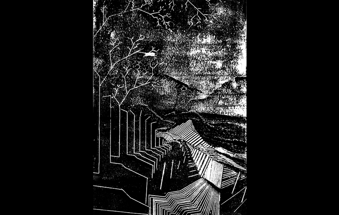 „Jura“, Linoldruck, Björn RuppertHeidelberg – UNESCO City of Literature