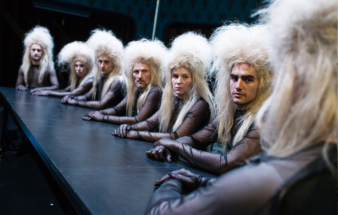› Die sieben Darsteller tragen helle Langhaar-Perücken, die aussehen wie voluminöse Schneeberge. Die Bewegungen der Akteure folgen scheinbar religiösen Riten. Mit solch assoziativen Bildern setzt der junge Regisseur Ersan Mondtag den Roman „Schnee“ von Nobelpreisträger Orhan Pamuk auf der Bühne des Thalia Theaters um. Doch die Inszenierung in Gestalt eines postmodernen Mysterienspiels erzählt den Roman nicht einfach nach. Die Geschichte des Dichters Ka, der für eine Reportage über Selbstmorde kopftuchtragender Frauen ins ostanatolische Kars zurückkehrt, bricht Mondtag in Themenkomplexe auf. Mit dieser Bühnenadaption eröffnen die diesjährigen Festspiele Ludwigshafen und zugleich das Themenwochenende „Offene Welt“.