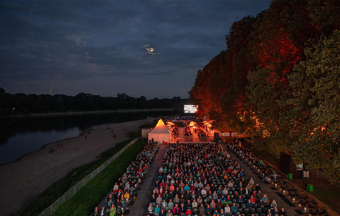 So war es im Verlauf der vergangenen 20 Jahre eine große Freude, zu erleben, wie Jahr um Jahr mehr Menschen aus Stadt und Region zu „ihrem“ Filmfestival kamen, um auf die Reise in fremde Welten, fremde Innenwelten zu gehen, zu versinken in dieser seltsamen Kunst der bewegten Bilder, bei der wir immer wie im Traum weg sind, während wir da sind, uns verlieren, während wir uns ganz präsent fühlen, uns im großen Kinosaal auf eine sehr eigentümliche Weise im Einklang mit vielen fremden Menschen fühlen, die fast schweigen und doch sehr beredt gegenwärtig sind. Falls es eines Beweises bedurfte, so waren es die Jahre der Pandemie — 2020 mit einem einzigen kleinen Freiluftkino, 2021 und 2022 mit Absperrgittern und Hygienemaßnahmen aller Art —, bei denen wir erlebt haben, wie sehr die Menschen aus Stadt und Region unser Festival als das annehmen, was es vor allem sein soll und ist: ein lebendiger Treffpunkt, ein beliebter Höhe-punkt des Zusammenlebens der Region. So schließt sich der Kreis, wenn auch vorläufig. Denn genau das war es, was man sich dereinst vor 20 Jahren erhofft hatte vom neuen „Festival des deutschen Films“ auf der Parkinsel von Ludwigshafen am Rhein: Dass etwas entstehen möge, das nach außen glänzt und zugleich nach innen wirkt, als Magnet des Zusammenkommens im Zeichen von Lebensfreude. Wir sind also nahezu wunschlos glücklich und gespannt, was die Zukunft bringen möge. Schön, wenn auch Sie dabei sind bei der 20. Ausgabe des Festivals des deutschen Films! ‹Festival des deutschen Films