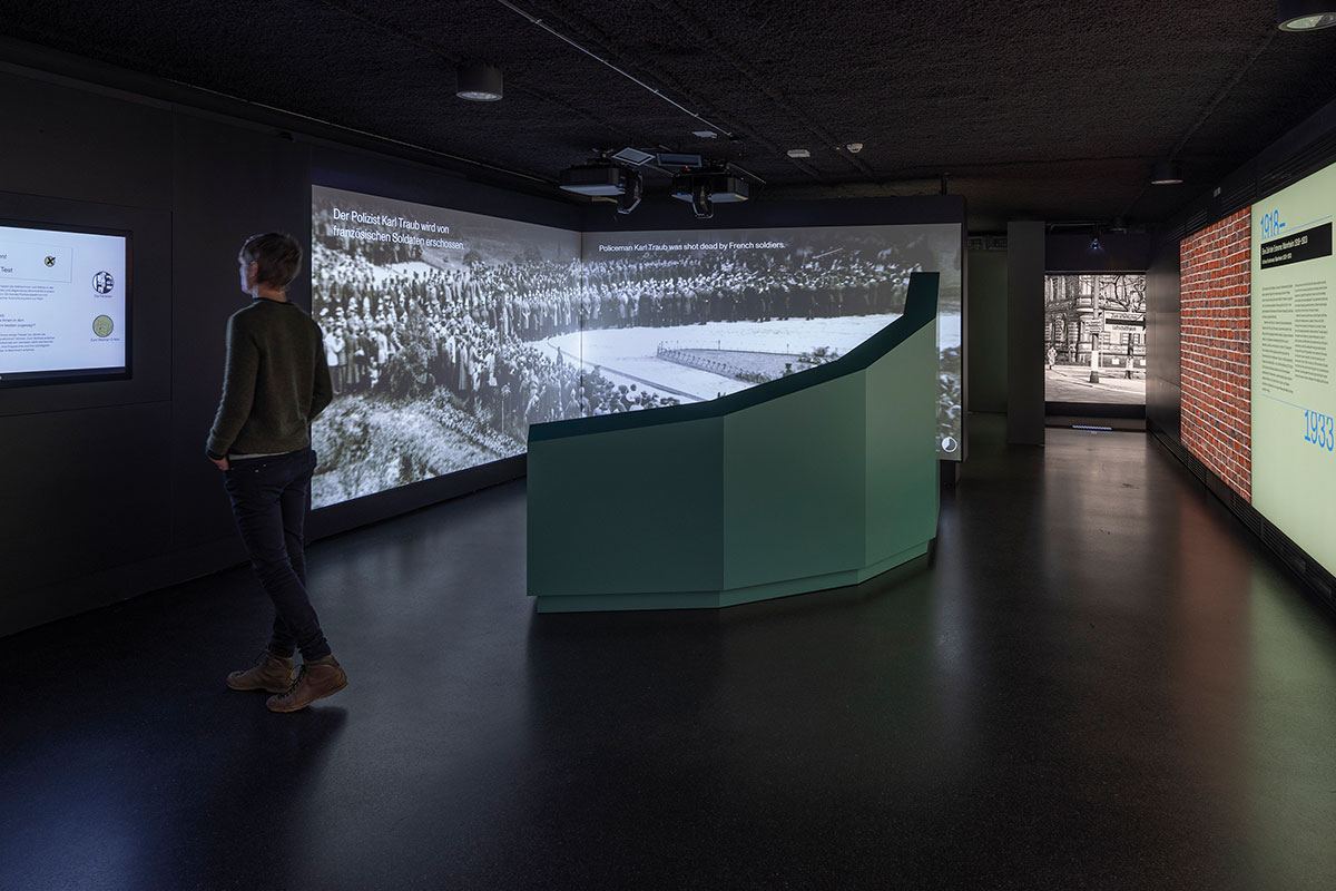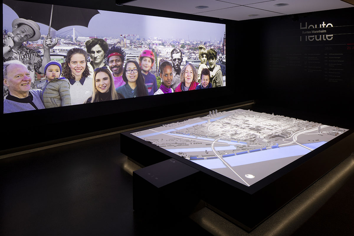 Was verändert sich, wenn eine Demokratie von einer Diktatur zerstört wird? Und wie kann Demokratie danach wieder gelingen? Die multimediale und interaktive Dauerausstellung „Was hat das mit mir zu tun?“ erzählt die historische Entwicklung in Mannheim während der NS-Diktatur. Gleichzeitig weitet sie die Perspektive auf das Davor und Danach und nimmt die Lebensschicksale von Opfern wie Täter*innen in den Blick. Medieninstallationen thematisieren etwa die gesellschaftliche Gleichschaltung oder einzelne Schicksale von Menschen, die zu Opfern des Regimes wurden. Der Opfer der Shoa wird in einem eigenen Raum gedacht. Digitale Zeitstrahle und Vertiefungsstationen in allen Ausstellungskapiteln helfen, die historischen Ereignisse einzuordnen.