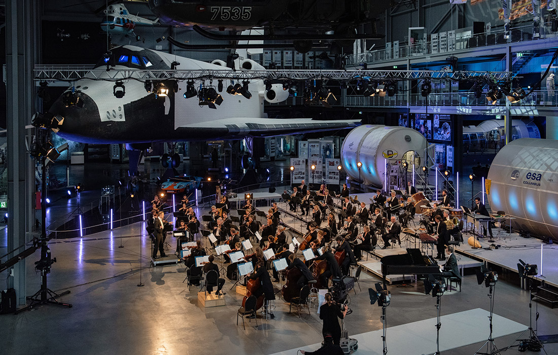 Besondere Zeiten erfordern besondere Maßnahmen. Und: besondere Spielorte. Die Staatsphilharmonie erlebt man gewöhnlich in vollbesetzten Konzertsälen, in prachtvollen Kirchen oder vor historischen Kulissen. Momentan sind jedoch ungewöhnliche Ideen gefragt. Im Technik Museum Speyer, wo sonst Besucher*innen zwischen Oldtimern, U-Boot und Boeing 747 umherstreifen, herrscht momentan auch Stille. Dies änderte das Orchester der Staatsphilharmonie und brachte Musik in die Hallen des Museums. Vor der futuristischen Silhouette des russischen Spaceshuttles „BURAN“ spielte das Ensemble Ende April ein Konzert in Kooperation mit ARTE. Auf dem Programm standen Werke, die auf nicht weniger beeindruckende Weise Kräfte und Energien freisetzen, als die Weltraumfähre. Zwar geht es in der Musik mehr ums Tanzen als ums Fliegen, aber wo liegen da schon genau die Grenzen? Chefdirigent Michael Francis leitete das Orchester mit John Adams’ „The Chairman Dances“, Zoltán Kodálys „Tänze aus Galanta“ sowie Antonín Dvorˇáks „Slawische Tänze“. ‹Das Ergebnis ist noch bis zum 26. Oktober in der Arte-Mediathek abrufbar: