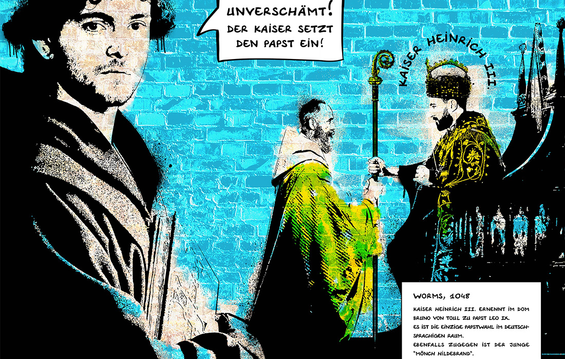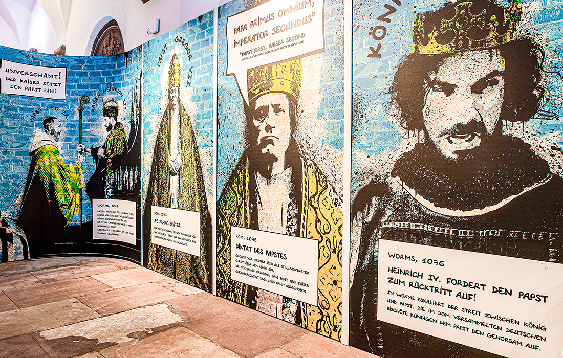 Wir setzen bei der Präsentation auf eine Mischung aus historischen Exponaten und innovativen Formaten. Ein zentrales Element der Ausstellung ist eine Graphic Novel, die entlang zweier Ausstellungswände in der Andreaskirche in das Thema einführt. Außerdem liefert ein Audioguide über das eigene Smartphone die Hintergründe und auf „Hör-Thronen“ kann man dem Disput zwischen Heinrich IV. und Papst Gregor VII. folgen. Schließlich haben wir auch ein Escape-Spiel entwickelt. Mit ihrem Smartphone können Besucher*innen dabei Aufgaben und Rätsel lösen.Und welche historischen Exponate werden das sein?