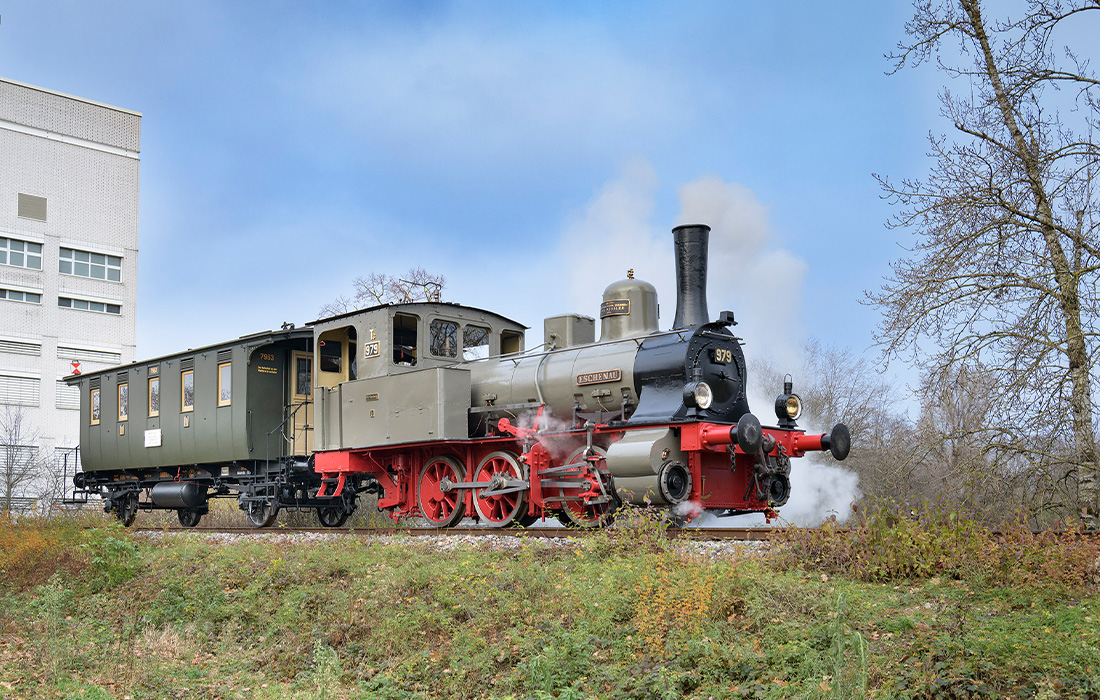 In den 1980er-Jahren kam die Lok schließlich nach Mannheim, wo sich das TECHNOSEUM gerade im Aufbau befand. Damals ging es vor allem darum, die Lok bis zur Eröffnung des Museums wieder betriebsfähig zu machen. Die jüngsten Restaurierungsarbeiten boten den Museumsmitarbeitenden die einmalige Chance, die Betriebssicherheit der „Eschenau“ mit historischer Authentizität zusammenzubringen — und die Besucher*innen können bei einer Fahrt mit dem Museumzug nun auch noch genauer nacherleben, wie sich das Reisen um 1900 angefühlt hat. ‹