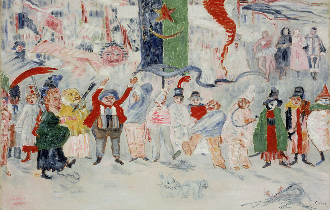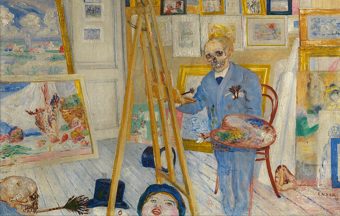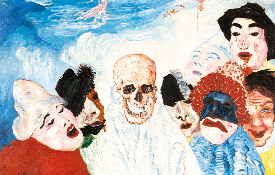 James Ensor, Der Tod und die Masken, 1897; © Liège, Musée des Beaux-Arts - La Boverie, James Ensor, Das malende Skelett, 1896-97; Koninklijk Museum voor Schone Kunsten,Antwerpen; © Hugo Maertens, Karneval in Flandern, 1931, Stedelijk Museum AmsterdamKunsthalle Mannheim