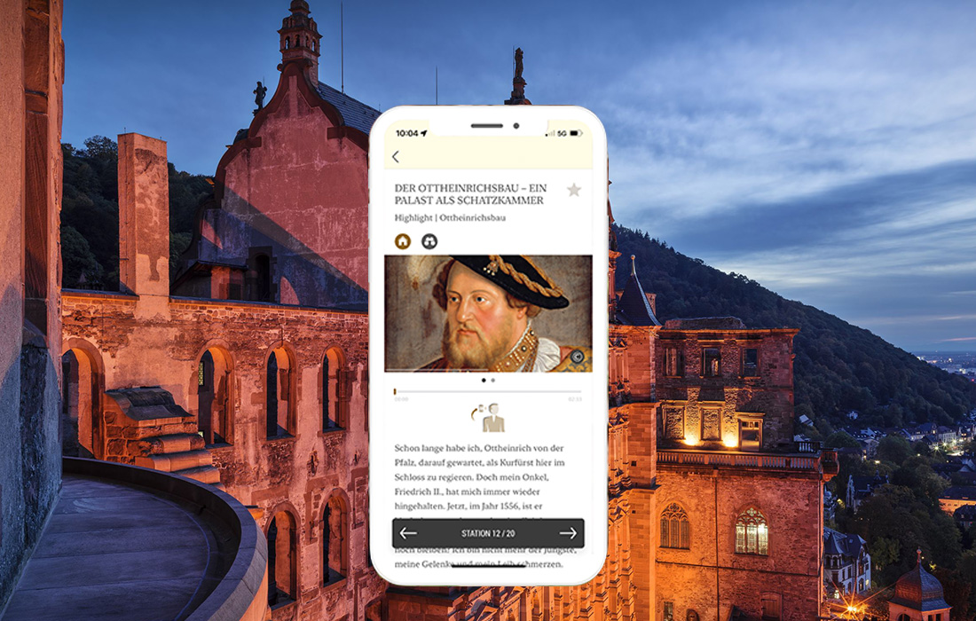 › Welche historischen Persönlichkeiten verbergen sich hinter den Figuren am Ottheinrichsbau? Wann wurde der Dicke Turm zerstört? Und wie sah der Alltag am Hofe des Kurfürsten in seiner Heidelberger Residenz aus? Diese und andere Fragen lassen sich mit der neuen „Monument BW“-App beantworten, die die Staatlichen Schlösser und Gärten Baden-Württemberg im Oktober veröffentlichen.Burgweg oder Elisabethentor„Zentrales Feature der App ist eine multimediale Erlebnistour zum Herunterladen, die vor Ort offline genutzt werden kann“, erklärt Frank Krawczyk, Leiter Bereich Kommunikation und Marketing bei den Schlössern und Gärten. „Mit ihr können die Gäste mit ihrem Smartphone oder Tablet durch die Geschichte von Schloss Heidelberg navigieren.“ Praktisch: Die 90-minütige Tour wird in zwei Varianten angeboten, je nachdem, aus welcher Richtung die Besucher*innen das Monument betreten. Als Startpunkt können sie entweder den Burgweg oder das Elisabethentor wählen und dann einen Rundgang zu zahlreichen Stationen unternehmen. Während dieses Rundgangs erhalten die Besucher*innen spannende Einblicke und vielfältige Hintergrundinformationen. Ergänzt wird das Angebot um multimediale Inhalte wie Bildergalerien und Videoclips. Inhaltlich machen die Gäste eine Zeitreise — auch zu den einstigen Herrscherdynastien der Kurfürsten, zum höfischen Zeremoniell und zu den Verteidigungs-anlagen des Schlosses. Eine individuelle SchlosstourWer Lust auf mehr Details hat, wird auf den Vertiefungsebenen dazu eingeladen: Hier werden die Themen „Leben und Alltag“, „Mit allen Sinnen“, „Durch Raum und Zeit“, „Detail im Blick“ und „Hinter den Kulissen“ präsentiert. Wer wenig Zeit hat, gibt das Wort „Highlight“ ein. Dann werden nur die Stationen der Erlebnistour angezeigt, die als Höhepunkte des Monuments gelten. Und auch interaktive Elemente haben die Entwickler*innen in die App integriert. So haben die Besucher*innen die Möglichkeit, eigene Notizen und Bilder zu den einzelnen Stationen hinzuzufügen und so eine individuelle Schlosstour zu kreieren, wodurch sie den Besuch im Anschluss nacherleben und mit anderen teilen können.Weitere Monumente entdeckenSelbstverständlich bietet „Monument BW“ auch alle wichtigen Informationen wie Öffnungszeiten, Preise, Kontaktmöglichkeiten, Anfahrt oder gastronomische Angebote. Und auch wer fremdsprachige Gäste erwartet, kann in naher Zukunft von der App profitieren: Eine englischsprachige Version wird gerade entwickelt und soll Anfang nächsten Jahres erscheinen.„Am besten laden Sie sich die App bereits zu Hause herunter, damit Sie vor Ort direkt beginnen können und auch schon vorher einen ersten digitalen Blick auf die einst prachtvolle Residenz werfen können“, empfiehlt Krawczyk. „Nach Ihrem Besuch von Schloss Heidelberg können Sie mit der App auch weitere Monumente des Landes wie das Barockschloss Mannheim oder das Schloss Bruchsal entdecken.“ ‹ Tipp! Sie finden die App in den App-Stores als kostenlosen Download unter dem Stichwort „Monument BW“.