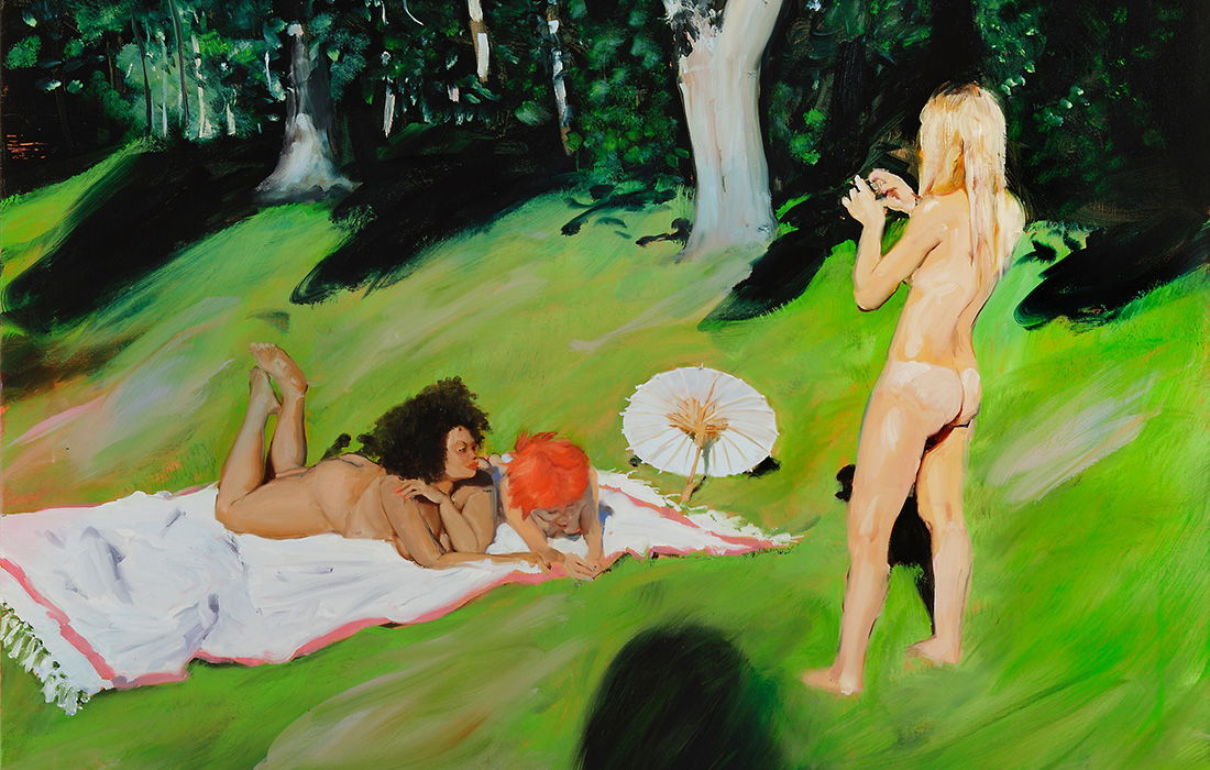 Jenna Gribbon: Me, a Lurker, 2020, Öl auf Leinwand, Privatsammlung, Deutschland© VG Bild-Kunst, Bonn 2021, Foto: Ludger Paffrath (Aufmacher) / Tizian-Nachfolge: Schlummernde Venus, 1580/1600, Öl auf Leinwand, Hessisches Landesmuseum Darmstadt