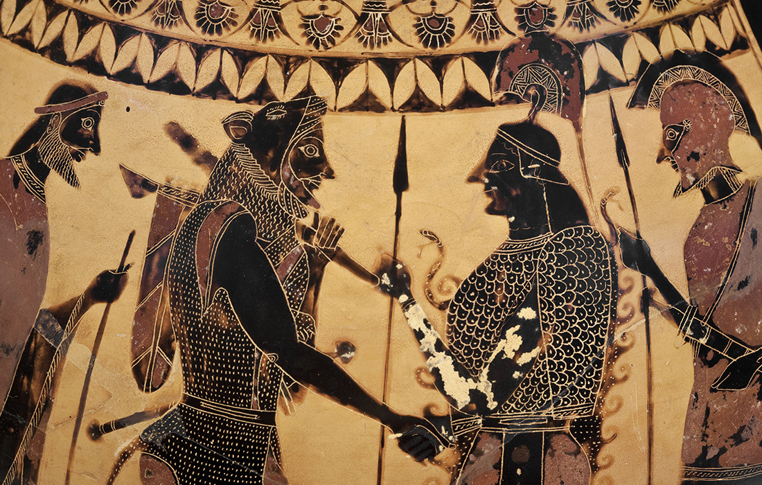 Amphore, 540 v. Chr., Schale 560 v. Chr., beides Antikenmuseum Basel und Sammlung Ludwig; Herkules-Statue, Antikensammlung Universität Heidelberg; Herkules und Amazone, Bronze, Landesmuseum Bonn; Stehender Herkules, um 1758, Johann Wilhelm Lanz, KMH; Herkules und Omphale, um 1626, Laurent de la Hyre, KMHKurpfälzisches Museum