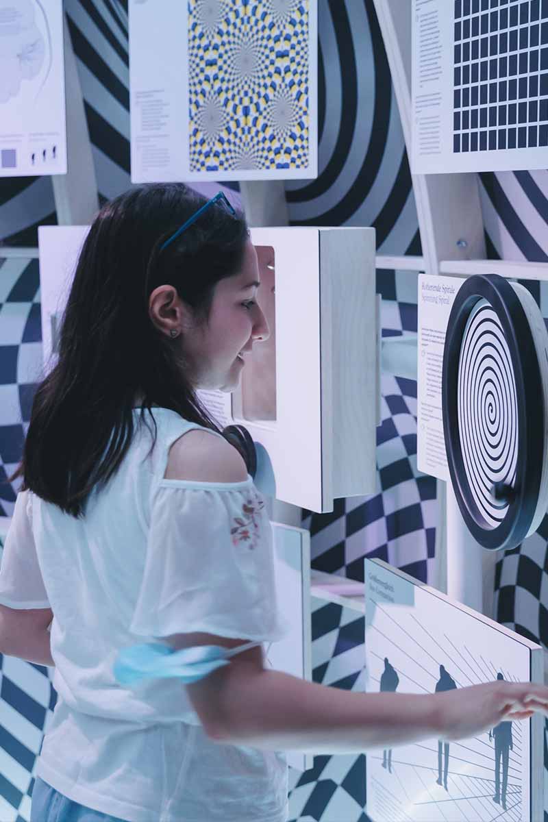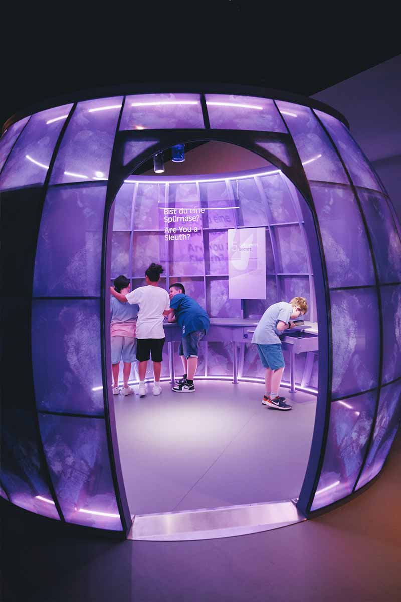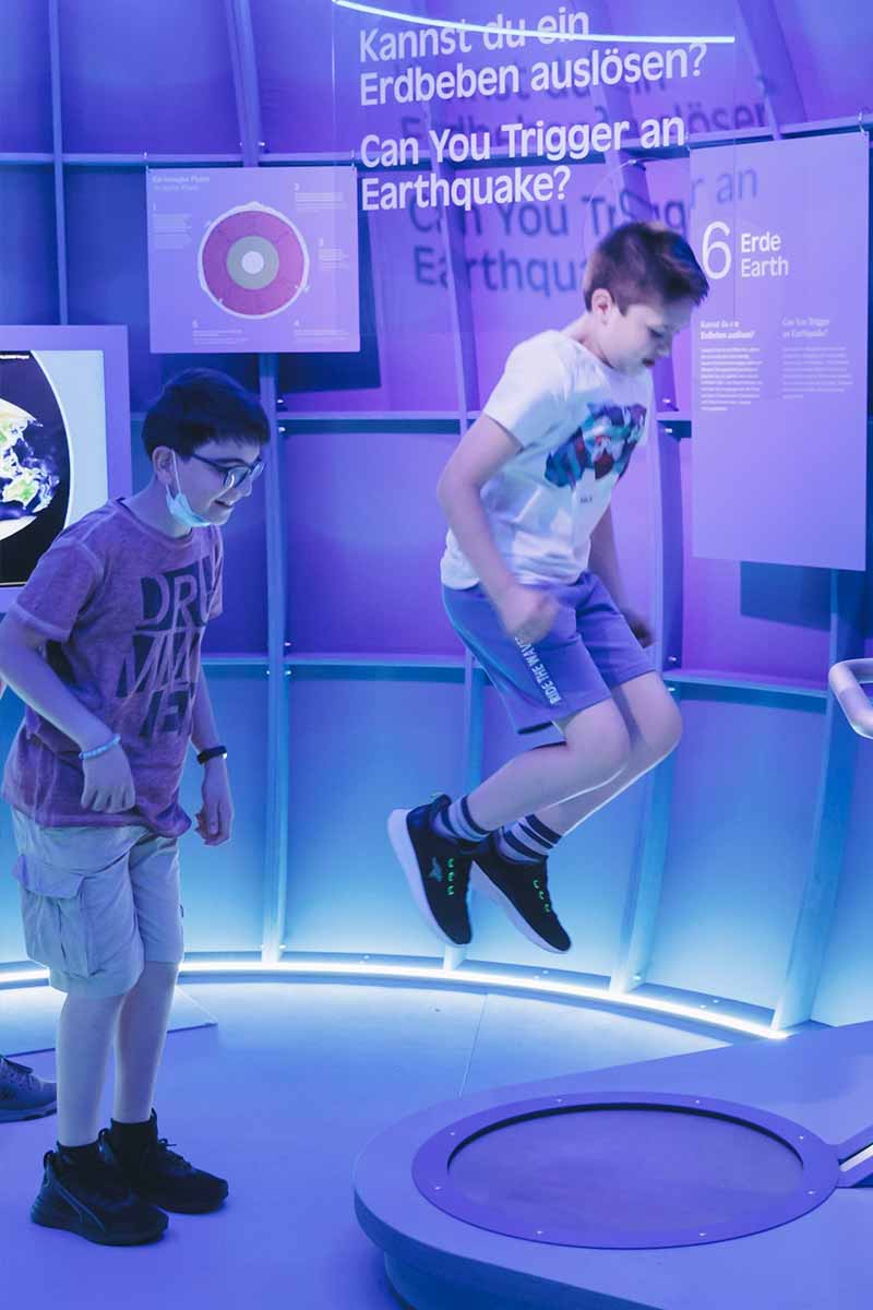 Acht Themeninseln — Ursprung, Leben, Wellen, Gedanken, Geheimnis, Erde, Gehirn und Kosmos — laden die Kinder dazu ein, selbst zu Forscher*innen zu werden. Wie funktioniert das Gehirn? Wie findet eine Fledermaus im Dunkeln ihre Beute? Wie sahen versteinerte Lebewesen früher aus? Ganz aktiv wird es an Stationen, an denen es darum geht, mit der Kraft der eigenen Gedanken einen Ball zu bewegen oder durch einen Sprung die Kraft eines Erdbebens zu simulieren. Selbst auf den ersten Blick komplexe Themen wie DNA, Schwerkraft oder Radioaktivität werden spielerisch entdeckt. ‹