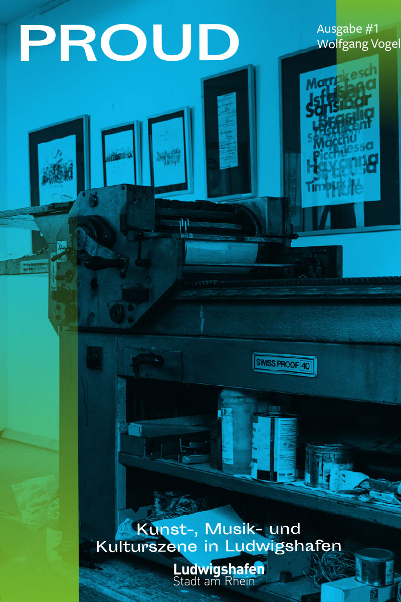 Blau, pink, giftgrün, schwarz — vier Ausgaben des PROUD-Magazins gibt es mittlerweile und sie sind so unterschiedlich wie die Künstlerinnen und Künstler, denen sie gewidmet sind: Den Anfang machte Wolfgang Vogel mit seiner Werkstatt im alten Umspannwerk, wo er mit historischen Druckerpressen arbeitet. Weiter ging es mit dem Jazz-Musiker Erwin Ditzner, berühmt für seine wilden Improvisationen (unter anderem trommelt er auf Plastikschweinchen), gefolgt von der Performance-Gruppe des Bueros für angewandten Realismus, die Ludwigshafen schon seit den 80er-Jahren mit ihren anarchistischen Aktionen auf Trab hält. Die aktuelle Ausgabe ist dem deutsch-kenianischen Künstler-Duo Mwangi Hutter gewidmet. Demnächst erscheint eine Ausgabe über Gabriele Twardawa und das AdRem Jugendtheater. „Die Publikation wird von Julia Katharina Thiemann konzeptionell und redaktionell betreut, die Gestaltung kommt von Sebastian Moock“, erklärt Monika Schill vom Kulturbüro der Stadt Ludwigshafen, Herausgeber des Magazins. „Es geht uns darum, der Kunstszene Anerkennung zukommen zu lassen, die Akteurinnen und Akteure einer breiteren Öffentlichkeit vorzustellen und gleichzeitig ein Archiv von zeitgenössischem Kunst- und Kulturleben in Ludwigshafen zu schaffen.“ Neben einem umfassenden Einblick in das Schaffen in Form großformatiger Abbildungen kommen die Künstlerinnen und Künstler selbst in Interviews zu Wort.