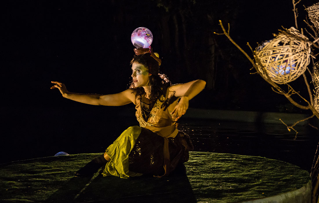 › Loreley, Hagen, Siegfried und die Nibelungen — der Rhein übt offenbar eine starke Anziehungskraft auf sagenumwobene Gestalten aus. In den Legenden ist sein Wasser mal ein Jungbrunnen, mal ein Ort der Verwandlung. Die einen finden ihr Schicksal in den Fluten, andere verstecken ihre Schätze darin. Wo, wenn nicht in Ludwigshafen, der selbsternannten „Stadt am Rhein“, muss man also damit rechnen, plötzlich einigen dieser merkwürdigen Wassergestalten zu begegnen? In diesem Sommer braucht man gar nicht erst lange das Ufer nach ihnen abzusuchen. Während des Internationalen Straßentheaterfestivals treiben sie sich nämlich praktischerweise mitten in der Innenstadt herum.Halb Wassergöttin, halb KröteVerantwortlich für das aufwendige Schauspiel ist das Theater Anu aus Berlin. Fünf Künstler werden den Ludwigshafener Europaplatz an den Abenden des 21. und 22. Juli 2017 mit einem märchenhaft-irrealen Stück über die mythische Kraft des Wassers bespielen. Die Inszenierung greift Motive aus dem „Froschkönig“ und anderen literarischen Texten mit ausgeprägter Wassersymbolik auf und überführt sie in fantasievolle neue Bilder. In einer Szene ist eine Wassergöttin zu sehen, die der Sagengestalt Undine ähnelt, aber auch etwas mit der garstigen Kröte aus dem Märchen der Brüder Grimm zu tun hat. Das Halbwesen in Menschengestalt bewacht eine Quelle und kommt dabei in den Besitz einer Silberkugel. Kaum hat die schöne Frau darin ihr Spiegelbild erblickt, verwandelt sie sich in ein Amphibium.Wassergöttin, Königssohn und nackte NympheFließende Übergänge zwischen Figuren, Räumen und Bedeutungen finden sich in der Theaterinstallation „Wasser. Mythen. Mensch.“ überall. Jede der fünf zeitgleich vorgeführten Performances dauert eine knappe Viertelstunde und wird ab Einbruch der Dämmerung loopartig wiederholt. „Die Nacht macht es leichter, sich der Inszenierung zu öffnen“, sagt Bille Behr, Spielleiterin beim Theater Anu. Mit ihrer Gruppe zeigt sie sich nicht nur häufig in der Dunkelheit, sondern vorzugsweise auch im Freien. Hier können die Gedanken der Zuschauer weiter schweifen als in einem herkömmlichen Theatersaal. Das ist wichtig, denn es braucht die eigene Fantasie, um sich auf die Zusammenhänge der surrealen Inszenierung einen Reim zu machen. Neben der Wassergöttin sind unter anderem ein Königssohn, eine Tänzerin und eine nackte Nymphe zu sehen.