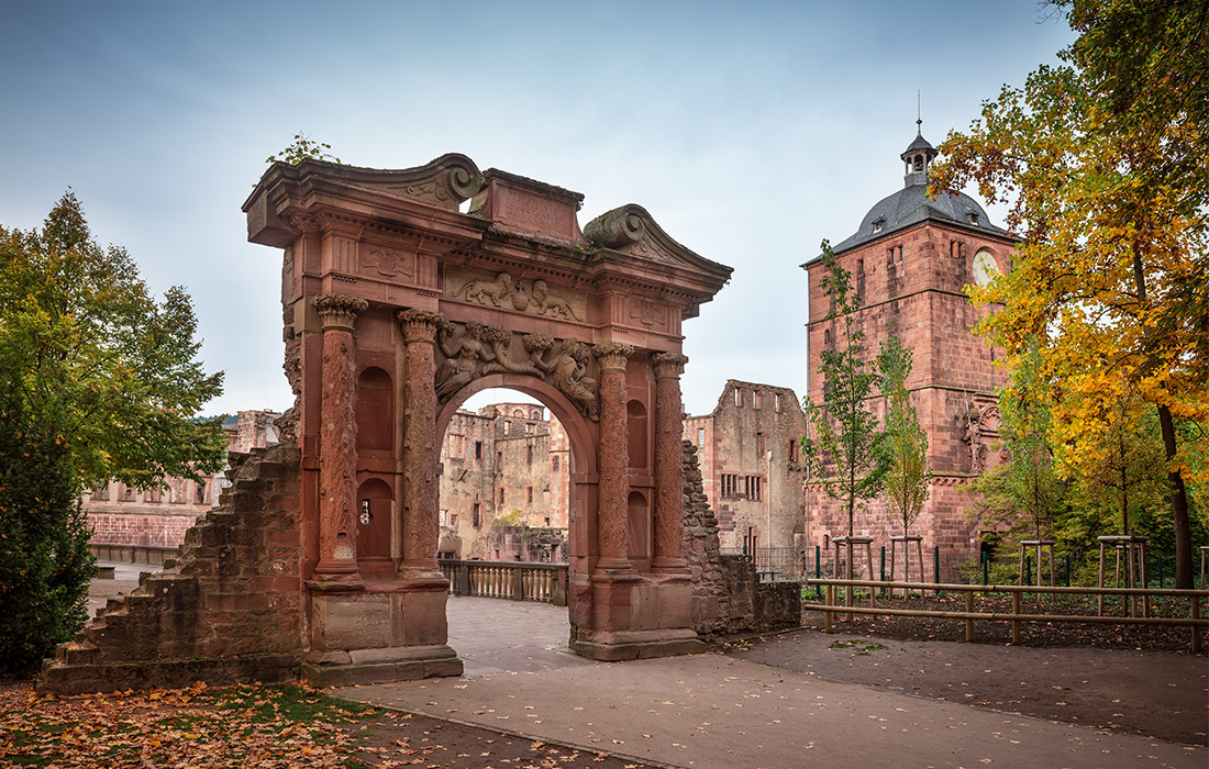 › Am Valentinstag 1613 heiratet Friedrich V. die englische Prinzessin Elisabeth Stuart in London. Die Ehe wird aus politischem Kalkül geschlossen: Für den ambitionierten Friedrich, einen Kurfürsten des Heiligen Römischen Reichs und einflussreichen Protestanten, bedeutet die eheliche Verbindung nicht nur Prestige, sondern beschert ihm auch einen mächtigen Verbündeten. Gleichzeitig ist die Ehe von Friedrich und Elisabeth auch von echter Liebe geprägt.„Achtes Weltwunder“Im Anschluss an die Heirat will Friedrich seine Stellung als einer der wichtigsten Fürsten Europas behaupten — und lässt Schloss Heidelberg großzügig und prunkvoll ausbauen. Die monumentale Größe, die der „Englische Bau“ einst hatte, lässt sich noch heute in seiner Ruine erkennen. Als Geburtstagsgeschenk für seine Gemahlin errichtet er ein Tor zum sogenannten Stückgarten. Die laut Legende sehr sportliche Bauzeit von einer Nacht scheint durchaus plausibel: Das Elisabethentor besteht aus wenigen großen Bauteilen, die schon fertig bearbeitet zum Schloss gebracht werden. Das Zusammensetzen geht schnell. Friedrich lässt zudem einen neuen Garten bauen — der Hortus Palatinus wurde schon während seiner Entstehung als „Achtes Weltwunder“ gefeiert. Er wird jedoch nie vollendet, da Friedrich 1618 einen verheerenden politischen Fehler begeht.Ein verheerender FehlerDie protestantischen Adeligen Böhmens wählen ihn zu ihrem König und er akzeptiert. Für die Erfüllung seiner Träume von königlicher Würde begibt er sich jedoch in die direkte Konfrontation mit dem Kaiser, der die böhmische Krone für sich beansprucht — und Friedrich ist hoffnungslos unterlegen. In nur einem Jahr verliert er Böhmen. Die Verbündeten des Kaisers besetzen zudem die Pfalz. Friedrich flieht mit seiner Frau, die seine Ambitionen geteilt hat, ins Exil, wo er stirbt. Der Ort seiner Bestattung ist nicht bekannt — verewigt ist er dennoch: Die Ruine von Schloss Heidelberg zeugt zwar auch von der Vergänglichkeit seiner Bauwerke, doch die Reste des Englischen Baus, des Hortus Palatinus und das sehr gut erhaltene Elisabethentor ziehen Besucherinnen und Besucher bis heute in ihren Bann — und sorgen dafür, dass Heidelbergs weltweiter Ruf als Monument auch im 21. Jahrhundert nicht verblasst. ‹
