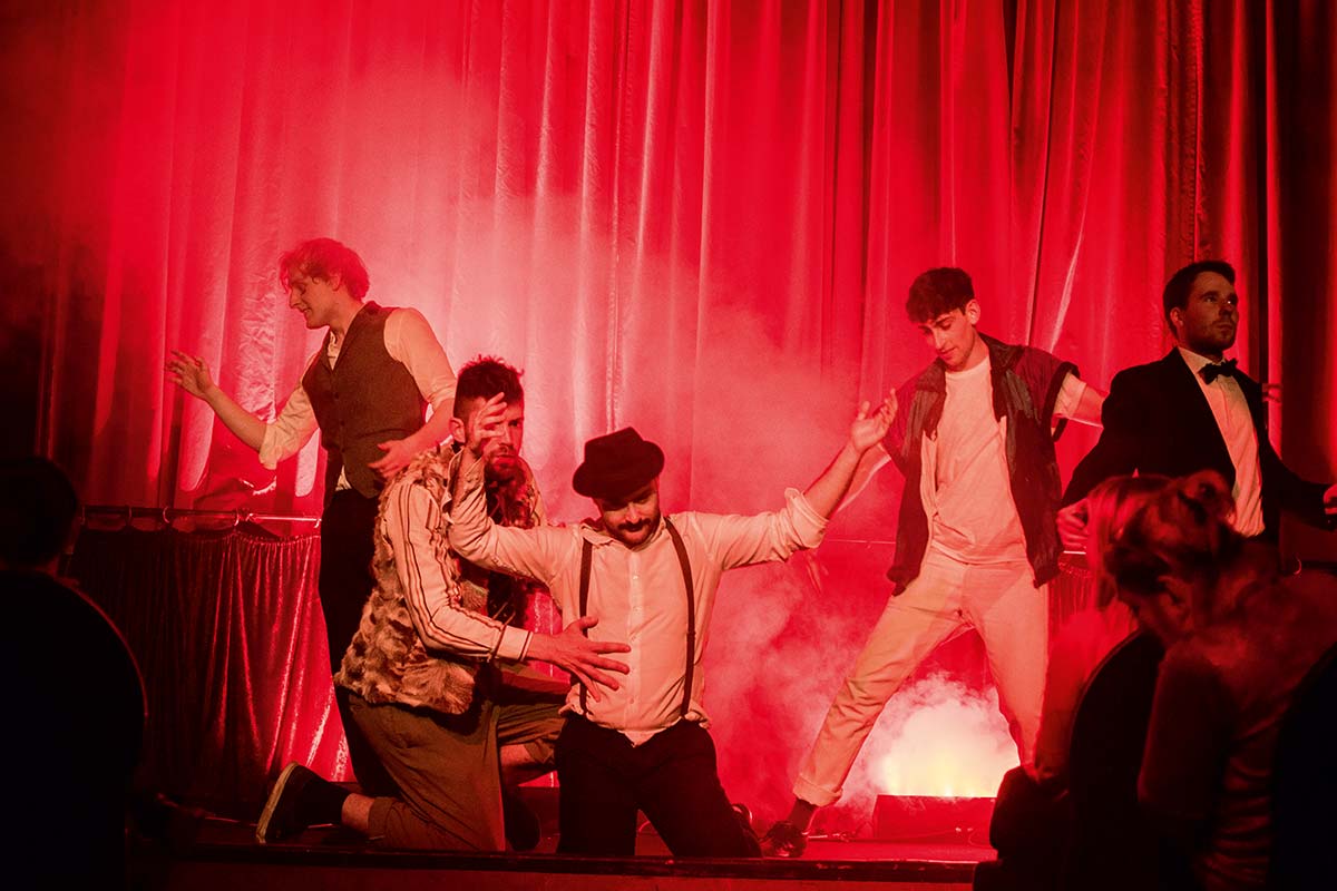 In seinen Produktionen bietet er deshalb eine radikal andere Idee des Volkstanzes an. Inklusiv statt exklusiv soll diese sein, global statt regional, universell statt spezifisch: Eine ritualistische Praxis der Selbstermächtigung, die starre Konventionen sprengt, statt sie zu festigen. „Ich glaube, Volkstanz und Musik haben das Potenzial, eine freie Spiritualität ohne Dogmen zu entwickeln“, sagt Mayer. Was er damit meint, wird in „Sons of Sissy“ deutlich, dem Stück, mit dem er im Juli auch beim Festival in Ludwigshafen gastieren wird. Und dort sind Mayer und seine drei Mitstreiter Matteo Haitzmann, Patric Redl und Manuel Wagner genau richtig, verfolgt das Festival doch in seiner ganzen Ausrichtung den Anspruch, Straßentheater in einen politischen und gesellschaftlichen Kontext zu stellen. Zu erleben sein wird eine schräge Mischung aus Volksmusikquartett und experimenteller Tanzgruppe. Da wird andächtig gefiedelt, stramm marschiert und splitternackt Schuhplattler getanzt, bis die Oberschenkel glühen.