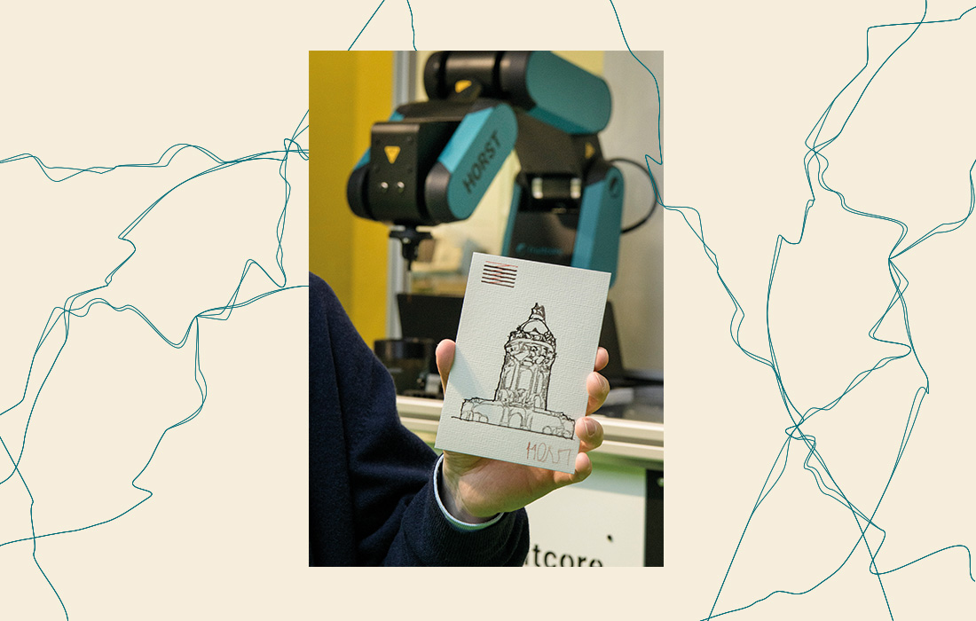 › HORST ist ein Mitarbeiter wie aus dem Bilderbuch. Am Fließband erledigt er die immer gleichen, monotonen Aufgaben — absolut zuverlässig und ohne zu murren. Dass HORST so gut funktioniert, liegt nicht zuletzt daran, dass die Firma fruitcore robotics, die 2016 aus einem Studentenprojekt an der Universität Konstanz entstanden ist und HORST konstruiert hat, als eines der ersten Robotik-Unternehmen weltweit ChatGPT in seine Steuerungssoftware integriert hat.Doch das Entwickler-Team setzte noch einen drauf: Um bei Messeauftritten stärker aufzufallen, hat fruitcore auch eine Version von HORST gebaut, die malen kann. Dabei kommt DALL-E zum Einsatz — ein Computerprogramm, das genau wie ChatGPT von dem Software-Unternehmen Open AI entwickelt wurde. Es erstellt Bilder auf der Basis von Textbeschreibungen, die wiederum auf maschinellem Lernen beruhen.Einstiegsmodell HORSTHORST ist „Made in Germany“ und wird in Villingen-Schwenningen produziert. Dieses Robotersystem darf deshalb als Musterbeispiel für ein findiges Start-up aus dem „Ländle“ in der Ausstellung des Landesmuseums nicht fehlen. Und noch einen weiteren Grund gibt es: „Automatisierung ist gerade das große Thema bei deutschen Mittelstandsfirmen. Dieser Roboter erlaubt Betrieben den kostengünstigen Einstieg“, erläutert Dr. Martin Weiss, Kurator am TECHNOSEUM. Damit besetzt fruitcore eine echte Marktlücke, denn kleinere Firmen können sich oft keine großen Roboter leisten.Zu finden ist HORST im TECHNOSEUM auf Ebene F in der Mitmach-Ausstellung Elementa 3 und in dem Bereich, der sich mit dem Thema Robotik beschäftigt. Um HORST zum Malen zu bringen, sprechen die Besucher*innen einen TECHNOscout an, der über ein Bedienpanel das gewünschte Motiv als Befehl eingibt. Für das Malen seines Kunstwerks benötigt der Roboter nur ein paar Minuten. Da HORST — genau wie seine Brüder in der Industrie — mobil ist und auf Rollen steht, wird er im Museum zukünftig bei Events und Sonderaktionen auch an wechselnden Orten im Einsatz sein. ‹