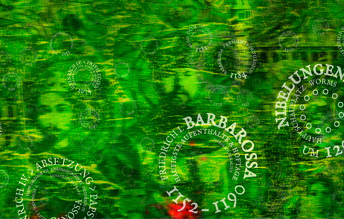 Hier stand Luther 1521 vor dem Reichstag und weigerte sich, seine Thesen zu widerrufen. Vor dem eindrucksvollen Wormser Dom verortet der anonyme Dichter des Nibelungenlieds den berühmten Königinnenstreit, bei dem Kriemhild und Brünhild über die Frage aneinandergeraten, wessen Ehemann den höheren Rang hat. Und nicht zu vergessen: Worms gehört mit Speyer und Mainz zu den bedeutendsten Stätten jüdischer Gelehrsamkeit im Mittelalter. Worms tausend Jahre alter jüdischer Friedhof zeugt davon. Erst vor zwei Jahren wurden die drei Städte aufgrund dieses Erbes in den Kreis der UNESCO-Welterbestätten aufgenommen. Einer der „sagenhaftesten“ Orte Europas Darüber hinaus ist Worms einer der „sagenhaftesten“ Orte Europas, denn neben dem Nibelungenlied gibt es noch viele weitere Sagen und Legenden, die sich um diese Stadt ranken. Leider ist von all dem nur noch wenig auf den ersten Blick zu sehen. Durch wechselnde Sonderausstellungen — zuletzt zu 500 Jahre Widerrufsverweigerung Martin Luthers auf dem Wormser Reichstag 1521 sowie zu „900 Jahre Wormser Konkordat“ — beleuchtet das Museum im Andreasstift ganz bewusst immer wieder stadtgeschichtlich bedeutsame Ereignisse und setzt sie in zeitgenössische Kontexte.„Das Besondere der neuen Ausstellung ist, dass es nicht um eine reine Geschichtsvermittlung geht, sondern vielmehr geschichtliche Themen künstlerisch aufgegriffen werden“, erläutert Dr. Olaf Mückain, Wissenschaftlicher Leiter des Museums im Andreasstift sowie des Nibelungenmuseums. Gespannt sein kann man unter anderem auf Eichfelders Digitalkunstwerk „Borbetografie“. Es ist nach dem latinisierten Namen „Borbetomagus“, einer keltischen Siedlung auf dem Gelände des heutigen Worms, benannt und zeigt ein Wandbild, das auf rund 100 Quadratmetern die Geschichte der Stadt inszeniert. Ein gutes Beispiel dafür, wie die Ausstellung ihre Besucher*innen auf eine spannende Entdeckungsreise durch viele Epochen mitnimmt. ‹
